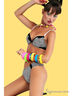 Бюстгальтер с поролоновой чашкой выполнен из принтованной микрофибры с леопардовым рисунком. Чашки с горизонтальным рельефом имеют с внутренней стороны карманы для съемных вкладышей для придания эффекта пуш-ап. По верхнему краю чашки настрочено кружево в тон рисунка основного полотна. Чашки поддерживаются металлическими каркасами. Боковые детали выполнены из принтованной микрофибры в полоску. По низу боковых деталей отделка из мягкого кружева. Спереди по центру узкой детали маленький бархатный бантик в цвет кружева. Бретели съемные в цвет основного полотна. Подкладка чашек из хлопка.