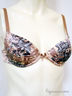 Бюстгальтер с поролоновой чашкой выполнен из принтованной микрофибры. Чашки с горизонтальным рельефом имеют с внутренней стороны карманы для съемных вкладышей для придания эффекта пуш-ап. Чашки поддерживаются металлическими каркасами. Спереди по центру узкой детали маленький атласный бантик. Бретели съемные в цвет основного полотна. Подкладка чашек из хлопка.