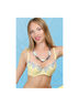 Бюстгальтер с поролоновой чашкой выполнен из эластичного хлопкового полотна. Чашки с горизонтальным рельефом имеют с внутренней стороны карманы для съемных вкладышей для придания эффекта пуш-ап. По верхнему краю чашек вышивка на хлопке. Чашки поддерживаются металлическими каркасами. Спереди по центру маленький атласный бантик с пуговкой. Бретели съемные в цвет основного полотна. Подкладка чашек из хлопка.