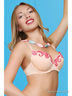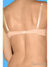 Бюстгальтер с поролоновой чашкой выполнен из эластичного хлопкового полотна. Чашки с горизонтальным рельефом имеют с внутренней стороны карманы для съемных вкладышей для придания эффекта пуш-ап. По верхнему краю чашек вышивка на хлопке. Чашки поддерживаются металлическими каркасами. Спереди по центру маленький атласный бантик с пуговкой. Бретели съемные в цвет основного полотна. Подкладка чашек из хлопка. Задние детали выполнены из однотонного эластичного хлопкового полотна, застежка на крючках в один ряд.