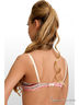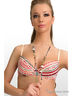 Бюстгальтер с поролоновой чашкой выполнен из принтованной микрофибры в полоску. Чашки с диагональным рельефом имеют с внутренней стороны карманы для съемных вкладышей для придания эффекта пуш-ап. Чашки поддерживаются металлическими каркасами. Бретели съемные в тон основного полотна. Подкладка чашек из хлопка.