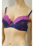Бюстгальтер с поролоновой чашкой выполнен из хлопкового полотна с растительным рисунком. Чашки с горизонтальным рельефом имеют с внутренней стороны карманы для съемных вкладышей для придания эффекта пуш-ап. Верхний край чашек выполнен из кружева. Чашки поддерживаются металлическими каркасами. Бретели съемные в цвет основного полотна. Подкладка чашек из хлопка.
