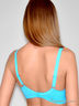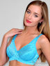 Таинственное благородство исходит от этого бюстгальтера, мягкие чашечки которого украшены нежной кружевной аппликацией. Возбуждающие бретельки с нежными бантиками придают гламурный вид, в то время как косточки эффектно подчеркивают декольте.