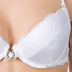 Романтичный бюстгальтер с легким эффектом Push-up на гибких косточках. Формованные чашечки со вшитым в нижнюю часть поролоном декорированы шитьем из атласной нити и изящным кружевом. Между чашечек -привлекательный бантик с кулоном со стразами. Боковые части и спинка выполнены из эластичного кружева. Внутренняя сторона чашечек имеет мягкий и приятный на ощупь материал. Съемные тонкие бретели, раздвоенные спереди, регулируются по длине. Застежка из трех петель, расположенных в один ряд, способствует плотному прилеганию при носке.