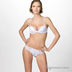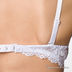 Романтичный бюстгальтер на косточках кипельно-белого цвета с эффектом Push-up. Формованные чашечки продублированы с внешней стороны тонкой сеточкой с шитьем, из которй выполнены боковые детали и спинка. Верхний обрез чашечек декорирован кружевом. Кружевное соединение чашечек украшено атласным бантиком. Съемные бретели с атласным блеском, раздвоенные спереди, регулируются по длине. Застежка из трех петель, расположенных в один ряд, способствует идеальной посадке и плотному прилеганию при носке.