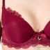 Яркий бюстгальтер с эффектом Push-up на косточках. Гладкие чашечки с поролоновыми вставками пришиты к кружевной основе. Верхний обрез чашечек так же украшен вшитым кружевом. Соединение чашечек декорировано атласным бантиком с пластиковой додвеской "кристалл". Боковые детали и спинка выполнены из эластичного кружева. Съемные бретели, выполненные из атласной резинки, регулируются по длине. Застежка из трех петель, расположенных в один ряд, способствует идеальной посадке и плотному прилеганию при носке.
