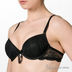 Романтичный бюстгальтер с эффектом Push-up на косточках. Формованные чашечки прикрыты тонкой сеточкой с шитьем и ажурной тесьмой. Соединение чашечек украшено кружевным бантиком. Боковые детали и спинка выполнены из эластичного кружева. Передняя часть съемных бретелей отделана кружевом. Бретели регулируются по длине. Застежка из трех петель, расположенных в один ряд, способствует идеальной посадке и плотному прилеганию при носке.