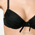 Элегантный бюстгальтер на косточках с эффектом Push-up. Формованные чашечки декорированы плиссерованной легкой тканью с внешней стороны. Верхний обрез чашечек отделан ажурной тесьмой. Спинка выполнена из тонкого материала "сеточка". Соединение чашечек украшено атласным бантиком. Съемные бретели, оформленные сетчатой тканью спереди, регулируются по длине. Застежка из трех петель, расположенных в один ряд, способствует идеальной посадке и плотному прилеганию при носке.