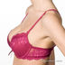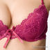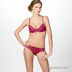 Яркий бюстгальтер на косточках с эффектом Push-up. Формованные чашечки продублированы с внешней стороны тонкой сеточкой с шитьем, из которой выполнены боковые детали и спинка. Верхний обрез чашечек декорирован кружевом. Кружевное соединение чашечек украшено атласным бантиком. Съемные бретели с атласным блеском, раздвоенные спереди, регулируются по длине. Застежка из трех петель, расположенных в один ряд, способствует идеальной посадке и плотному прилеганию при носке.