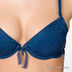 Романтичный бюстгальтер с легким эффектом Push-up на гибких косточках. Формованные чашечки со вшитым в нижнюю часть поролоном декорированы тонкой плиссерованной тканью и изящным кружевом. Между чашечек -привлекательный бантик из ажурной тесьмы с кулоном "сердце". Боковые части и спинка выполнены из эластичного кружева. Внутренняя сторона чашечек имеет мягкий и приятный на ощупь материал. Съемные бретели, украшенные спереди ажурной тесьмой, регулируются по длине. Застежка из трех петель, расположенных в один ряд, способствует плотному прилеганию при носке.