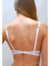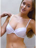 Бюстгальтер с поролоновой чашкой выполнен из тонкой ажурной сетки. Чашки с горизонтальным рельефом с внутренней стороны имеют карманы для съемных вкладышей для придания эффекта пуш-ап. Верхняя часть чашки выполнена из вышивки на сетке. Бретели ажурные в цвет основного полотна. Боковые детали с поддерживающими косточками. Подкладка чашек из хлопка. Для бюстгальтеров с маленькими размерами чашек застежка на крючок и три петли в один ряд. Для больших размеров застежка более широкая с крючками и петлями, расположенными в два ряда.