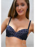 Бюстгальтер пуш-ап на каркасах с поролоновой чашкой и съёмными вкладышами для зрительного увеличения груди выполнен из тонкой полупрозрачной микрофибры. Рисунок выполнен по новой технологии путём вытравки. Чашки с горизонтальным рельефом. Верхняя часть чашки выполнена из эластичного кружева. Центральная деталь также выполнена из кружева. Подкладка из хлопка.