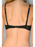 Бюстгальтер с поролоновой чашкой выполнен из тонкой ажурной сетки. Чашки с горизонтальным рельефом с внутренней стороны имеют карманы для съемных вкладышей для придания эффекта пуш-ап. Верхняя часть чашки выполнена из вышивки на сетке. Бретели ажурные в цвет основного полотна. Боковые детали с поддерживающими косточками. Подкладка чашек из хлопка. Для бюстгальтеров с маленькими размерами чашек застежка на крючок и три петли в один ряд. Для больших размеров застежка более широкая с крючками и петлями, расположенными в два ряда.