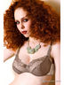 Бюстгальтер с мягкой чашкой, на каркасах, выполнен из эластичного принтованного сатина. Чашка с Т-образным рельефом, выполнена из сетки с вышивкой. Сзади закруглённый вырез. Центральная деталь также выполнена из вышитой сетки. Бретели съемные. Боковые детали с поддерживающими косточками. Подкладка нижней части чашек из сетки.