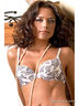Бюстгальтер с формованной чашкой пуш-ап, на каркасах из принтованной микрофибры. Передняя часть боковых деталей выполнена из вышивки на сетке. Боковые детали с поддерживающими косточками. Бретели съемные. Подкладка чашек из хлопка.