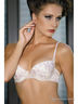 Бюстгальтер на каркасах с формованными чашками выполнен из тонкого жаккардового полотна. Сверху чашки обтянуты тонкой сеткой с вышивкой. Регулирующиеся бретели съемные.