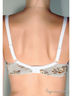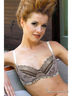 Бюстгальтер с частично поролоновой чашкой, на каркасах, выполнен из принтованного сатина. Чашка с диагональным рельефом, верхняя часть чашки без поролона выполнена из прозрачного ажурного кружева. Центральная деталь также выполнена из ажурного кружева. Сзади закруглённый вырез. Подкладка из хлопка.