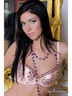 Бюстгальтер на каркасах, с поролоновой чашкой и съёмным вкладышем для зрительного увеличения груди. Чашки с горизонтальным рельефом выполнены из атласного трикотажа с набивным рисунком. По верхнему краю чашки отделка из тесьмы с продетой через неё бархатной лентой. Боковые и передняя части бюстгальтера выполнены из тонкой микрофибры с мелким горошком из флока. Бархатные съёмные бретели. В отверстии передней детали видно украшение в виде металлического сердца с цветными стразами. Подкладка из хлопка.