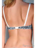 Бюстгальтер пуш-ап на каркасах с поролоновой чашкой и съёмными вкладышами для зрительного увеличения груди выполнен из жаккардового полотна. Чашки с вертикальным рельефом. Вдоль верхнего края чашки настрочена ажурная тесьма с атласной лентой. Центральная деталь также выполнена ажурной тесьмы с лентой. Низ боковых деталей обработан на микрооверлоке в виде небольшой рюши. По центру бюстгальтера необычный атласный бантик контрастных цветов. Подкладка из хлопка.
