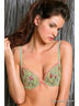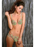 Бюстгальтер на каркасах, с поролоновой чашкой со съёмными вкладышами, выполнен из принтованного сатина. Чашки с горизонтальным рельефом. По верхнему краю чашки ажурная тесьма. В центре бантик. Центральная деталь бюстгальтера узкая. Бретели отстёгиваются. Хлопковая подкладка чашек.