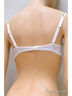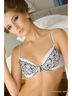 Бюстгальтер с поролоновой чашкой выполнен из тонкого жаккардового полотна с рисунком в полоску. Чашки с горизонтальным рельефом имеют с внутренней стороны карманы для съемных вкладышей для придания эффекта пуш-ап. Нижняя часть чашки и центральная деталь стана выполнена из вышивки на сетке. Чашки поддерживаются металлическими каркасами. Боковая деталь с поддерживающимися косточками. Спереди по центру украшение в виде маленького атласного бантика. Бретели съемные в цвет вышивки. Подкладка чашек из хлопка. Для бюстгальтеров с маленькими размерами чашек застежка на крючок и три петли в один ряд. Для больших размеров застежка более широкая с крючками и петлями, расположенными в два ряда.
