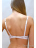 Бюстгальтер с поролоновой чашкой выполнен из тонкой ажурной сетки. Чашки с горизонтальным рельефом с внутренней стороны имеют карманы для съемных вкладышей для придания эффекта пуш-ап. Верхняя часть чашки выполнена из вышивки на сетке. Бретели ажурные в цвет основного полотна. Боковые детали с поддерживающими косточками. Подкладка чашек из хлопка. Для бюстгальтеров с маленькими размерами чашек застежка на крючок и три петли в один ряд. Для больших размеров застежка более широкая с крючками и петлями, расположенными в два ряда.