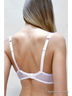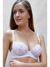 Бюстгальтер с мягкой чашкой, на каркасах, выполнен из тонкой ажурной сетки. Чашки с Т-образным рельефом, выполнены из вышивки на сетке. Нижняя часть чашки с поддерживающей сеткой с внутренней стороны. Боковая деталь с поддерживающими косточками. Бретели ажурные черного цвета. Сзади закруглённый вырез