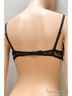 Бюстгальтер c формованной чашкой выполнен из жаккардового полотна. По боковому краю чашки аппликация в виде вышивки. Через центр чашки проходит вертикальный рельеф. Чашки поддерживаются металлическими каркасами. Спереди по центру украшение в виде маленького бантика. Боковые детали бюстгальтера выполнены из тонкого кружева. Бретели съемные черного цвета. Подкладка чашек из хлопка. Для бюстгальтеров с маленькими размерами чашек застежка на крючок и три петли в один ряд. Для больших размеров застежка более широкая с крючками и петлями, расположенными в два ряда.