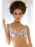 Бюстгальтер на каркасах, с формованной чашкой из принтованной микрофибры. Чашки с горизонтальными рельефами. Нижняя часть чашки выполнена из микрофибры с вышивкой настроченной вышитой сеткой. В середине центральной детали украшение в виде бантика из атласной ленты. Задние детали выполнены из принтованной эластичной микрофибры, застежка на крючках в один ряд. Подкладка чашек из хлопка