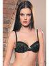 Бюстгальтер пуш-ап на каркасах с поролоновой чашкой и съёмными вкладышами выполнен из ажурного трикотажного полотна. Чашки с горизонтальным рельефом. Нижняя часть чашки выполнена из двуцветного кружева. Центральная деталь также выполнена из двуцветного кружева. Бретели съёмные. Подкладка из хлопка.