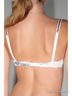 Бюстгальтер пуш-ап на каркасах с поролоновой чашкой и съёмными вкладышами для зрительного увеличения груди выполнен из принтованного трикотажного полотна. Чашки с горизонтальным рельефом. Верхняя часть чашки выполнена из контрастного ажурного кружева. По центру бюстгальтера украшение в виде бархатного бантика со стразом. Подкладка из хлопка.