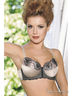 Бюстгальтер с мягкой чашкой выполнен из сатина. Чашка с Т-образным рельефом. Нижняя часть чашки из сатина, верхняя часть чашки выполнена из сатина с вышивкой. Верхний ажурный край вышивки закреплен тонкой резинкой с изнаночной стороны. Чашки поддерживаются металлическими каркасами. По центру широкой передней детали украшение маленький атласный бантик. Бетели в цвет основного полотна. Бретели украшены маленьким атласным бантиком. Подкладка чашек из хлопка. Боковые детали с поддерживающими костями. Сзади закругленный вырез.