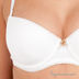 Классический бюстгальтер-пуш-ап на плотных формованных чашечках с косточками со съемными вкладышами. Эластичные бретели отстегиваются, регулируются по длине, застежка на два крючка на три позиции. Изделие декорировано атласным бантиком и кружевом по бортику.