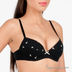 Классический бюстгальтер-пуш-ап на плотных формованных чашечках с косточками с кармашками для съемных вкладышей. Эластичные бретели не отстегиваются, регулируются по длине, застежка на два крючка на три позиции. Изделие декорировано атласным бантиком и вышивкой.