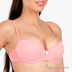 Классический бюстгальтер-пуш-ап на плотных формованных чашечках с косточками со съемными вкладышами. Эластичные бретели отстегиваются, регулируются по длине, застежка на два крючка на три позиции. Изделие декорировано атласным бантиком и кружевом по бортику.