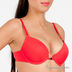 Классический бюстгальтер-пуш-ап на плотных формованных чашечках с косточками со съемными вкладышами. Эластичные бретели отстегиваются, регулируются по длине, застежка на два крючка на три позиции и спереди на металлический замочек.