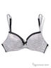 Атласный бюстгальтер классической формы на регулируемых бретелях. Чашки декорированы тесьмой, посередине бантик.