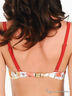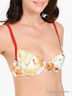 Эротичная форма с глубоким декольте. Чашки с защипами. Бретели контрастного цвета не отстегиваются. Украшение, напоминающее цехин цвета состаренного золота, располагается между чашками.