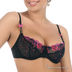 Бюстгальтер классической формы на косточках. Застежка на два крючка. Несъемные бретели регулируются по длине. Чашки выполнены из кружевного материала с оригинальной вышивкой.