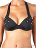 Бюстгальтер с эффектом пуш-ап. Декоративные элементы расположены в форме треугольника на чашках. Широкие бретели со складками, завязываются на шее.