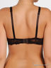 Бюстгальтер мягкими поролоновыми чашечками на косточках. Эластичные несъемные бретели, застежка на два крючка в три позиции. Спинка выполнена из кружевного материала.