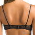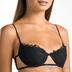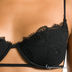 Бюстгальтер балконет на косточках со съемным поролоновым уплотнителем. Чашечки с вертикальными швами. Съемные бретельки регулируются по длине. Застежка на один крючок. Выполнен эластичной сетки, украшенной вышивкой. В комплект сходят вторые бретельки.