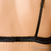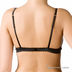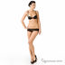 Оригинальный бюстгальтер черного цвета украшен атласным бантиком с подвеской в виде бабочки. Чашечки декорированы вставками из атласных лент.