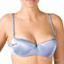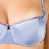 Изящный бюстгальтер нежного сиреневого оттенка. Плотные чашечки имеют дополнительные съемные вставки и украшены рюшами. Одна чашечка декорирована логотипом Denny Rose из черного бархата.