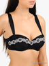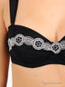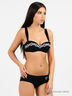 Оригинальный бюстгальтер балконет с поролоновыми чашками на косточках. Регулируемые съемные эластичные бретели-трансформеры, с возможностью застежки вокруг шеи. Застегивается на два крючка в три позиции. Спинка усилена силиконовой лентой. Декорирован драпировкой на чашках и кружевной нашивкой.