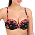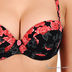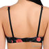 Оригинальный бюстгальтер Push up на косточках с поролоновыми чашками. Выполнен из тонкой эластичной ткани, внутренняя часть чашек выполнена из мягкого хлопкового материала. Несъемные эластичные бретели регулируются по длине. Нижняя часть чашек дополнена съемным уплотнителем. Застегивается на два крючка в две позиции. Декорирован оригинальным принтом.