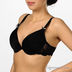 Бюстгальтер с закрытыми чашками, поролон с эффектом пуш-ап, косточки. Регулируемые по длине широкие бретели. Декор вышивкой. Застежка на спине на три ряда двойных крючков. Подкладка из мягкой ткани.