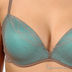 Бюстгальтер с закрытыми чашками, тонкий слой поролона. Регулируемые по длине бретели. Декоративная сетка. Застежка на спине на три ряда двойных крючков. Подкладка из мягкой ткани. Дополнительная силиконовая лента для более плотного прилегания.