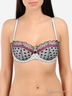 Великолепный бюстгальтер балконет с тонкой поролоновой чашкой на косточках. Чашки выполнены из кружева, декорированы контрастной тесьмой, спинка из тонкой эластичной ткани. Несъемные бретели регулируются по длине, застежка на два крючка в три позиции.