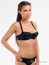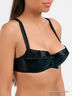 Великолепный бюстгальтер балконет с чашками на косточках. Выполнен из тонкой шелковистой эластичной ткани. Нижняя часть чашки на тонком поролоне, несъемные бретели регулируются по длине, застежка на два крючка в три позиции, чашки с хлопковой подкладкой. Бюстгальтер декорирован вставкой с бархатистым напылением.